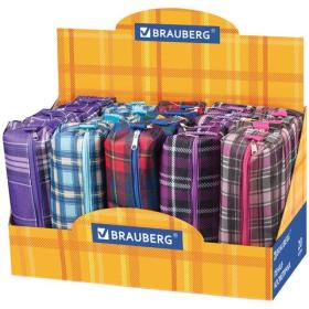 Пенал-косметичка BRAUBERG полиэстер, ассорти 5 цветов, "Шотландия", 20х6х4 см, дисплей, 223897