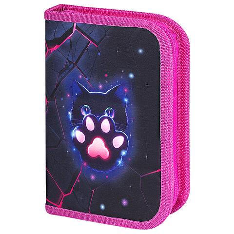 Пенал BRAUBERG с наполнением, 1 отделение, 1 откидная планка, 24 предмета, 21х14 см, "Neon cat", 271523
