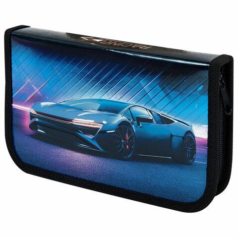 Пенал ЮНЛАНДИЯ ЮНИОР, 2 отделения, с ручкой, полиэстер, "Speed demon", 21х8х6 см, 273817