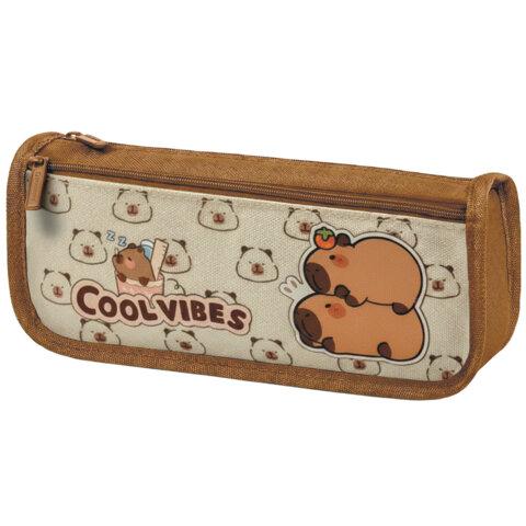 Пенал мягкий BRAUBERG KIDS, 2 отделения, полиэстер, "Capybaras", 22x10x6 см, 274582