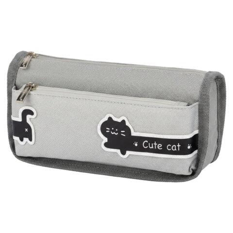 Пенал мягкий BRAUBERG, 2 отделения, полиэстер, "Long cat", светло-серый, 21х9х6 см, 274612
