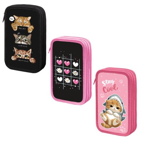 Пенал ПИФАГОР, 3 отделения, ламинированный картон, 19х11 см, "Lazy cat", 272252