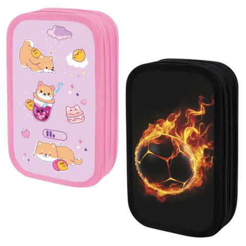 Пенал ПИФАГОР, 3 отделения, ламинированный картон, 19х11 см, АССОРТИ для девочек, 274562