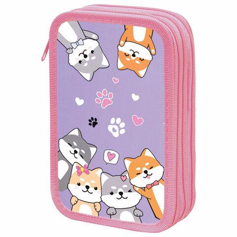 Пенал мягкий ЮНЛАНДИЯ, 2 отделения, полиэстер, "Bunny", фиолетовый, 20х7х9 см, 228989