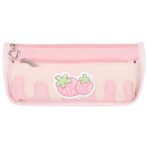 Пенал мягкий ЮНЛАНДИЯ, 2 отделения, полиэстер, "Strawberry shortcake", розовый, 21х9х6 см, 271577