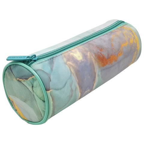 Пенал-тубус BRAUBERG, с эффектом Soft Touch, мягкий, "Mint marble", 22х8 см, 271568