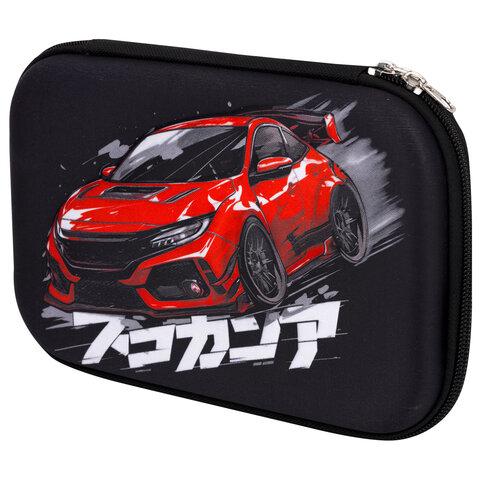 Пенал ЮНЛАНДИЯ большой, 1 отделение, 1 откидная планка, карман, полиэстер / EVA, 22х15х5 см, "Street race", 273195