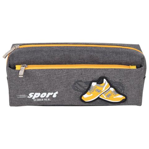 Пенал мягкий ЮНЛАНДИЯ, 2 отделения, полиэстер, "Sport scorer", серый, 20х9х6 см, 271575