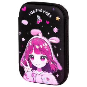 Пенал ЮНЛАНДИЯ большой, 1 отделение, 1 откидная планка, карман, полиэстер / EVA, 22х15х5 см, "Anime sign", 273194
