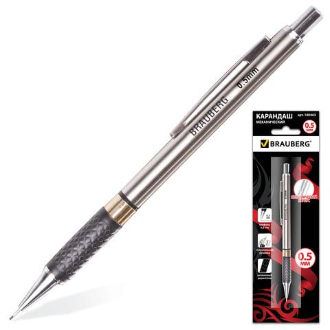Карандаш механический 0,5 мм, BRAUBERG "Black Jack", металлический корпус, ластик, резиновый грип, 180463