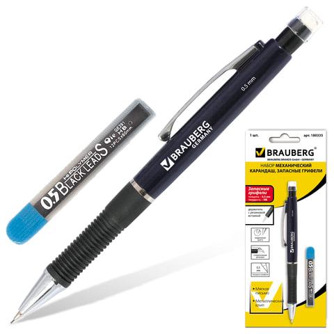 Карандаш механический 0,5 мм + грифели HB 12 штук на блистере, BRAUBERG MODERN, 180335