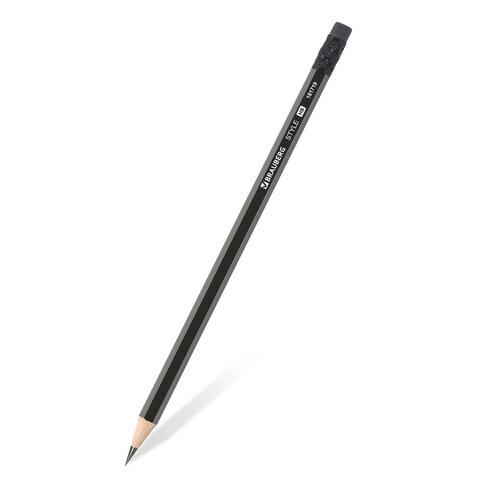 Набор карандашей чернографитных BRAUBERG "Style" 12 шт., HB, с ластиком, корпус черно-серый, 181719