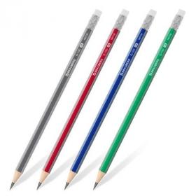 Набор карандашей чернографитных BRAUBERG "G-100" 4 шт., HB, с ластиком, корпус ассорти, 181715