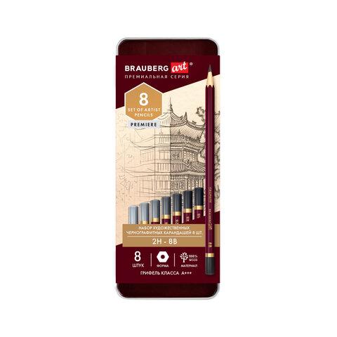 Карандаши чернографитные художественные 2H-8B, НАБОР 8 шт., В ПЕНАЛЕ, BRAUBERG ART "PREMIERE", 181894