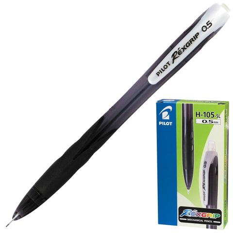 Карандаш механический PILOT Н-105 "Rex Grip", корпус черный, резиновый грип, ластик, 0,5 мм, H-105 B
