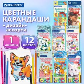 Карандаши цветные "АССОРТИ 8 ДИЗАЙНОВ 7-14 лет", 12 цветов, трехгранные, BRAUBERG, 182056