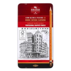 Карандаши чернографитные KOH-I-NOOR, НАБОР 12 шт., "Art" 6B-6H, без резинки, металлическая коробка, 1582012001PL
