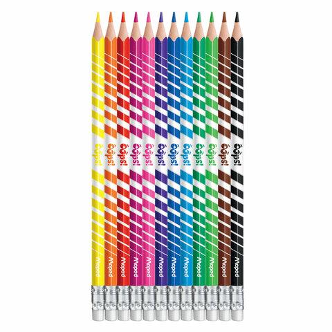 Карандаши цветные стираемые с ластиком MAPED (Франция) "Color'Peps Oops", 12 цветов, трехгранные, 832812