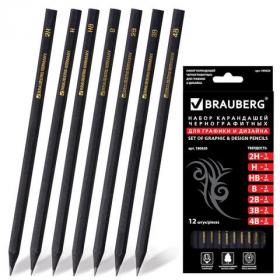 Карандаши художественные чернографитные 4H-8B, НАБОР 12 штук, BRAUBERG ART "CLASSIC", 181542