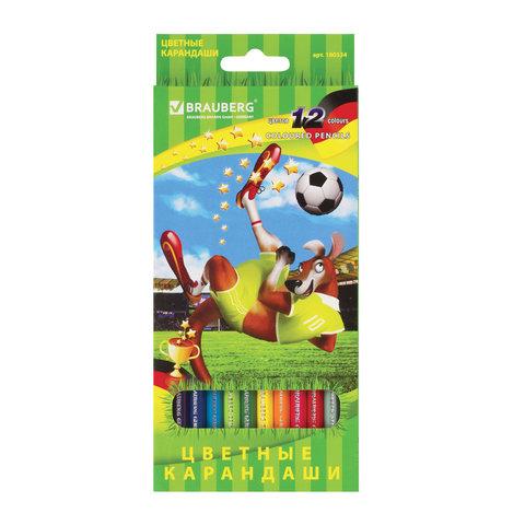 Карандаши цветные BRAUBERG "Football match", 12 цветов, шестигранные, грифель 3 мм, натуральное дерево, 180534