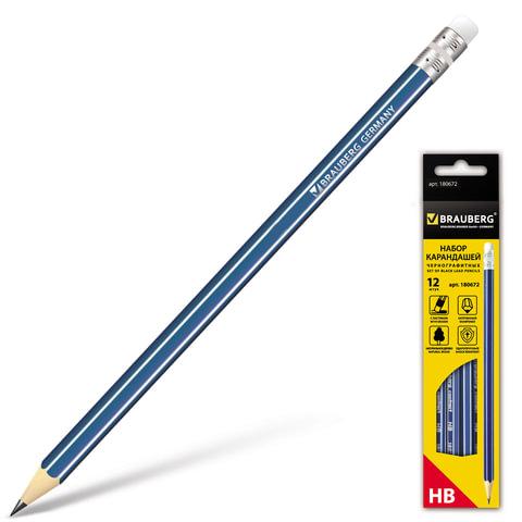 Карандаши чернографитные BRAUBERG НАБОР 12 шт., "ZTX", HB, с резинкой, синий корпус, картонная упаковка, 180672