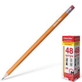 Карандаши чернографитные простые с ластиком HB, ВЫГОДНАЯ УПАКОВКА КОМПЛЕКТ 48 штук, ОФИСМАГ, 180639