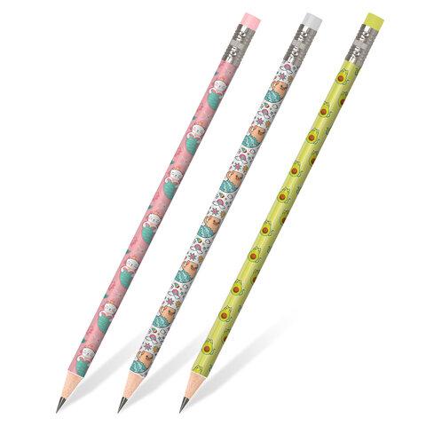 Карандаш чернографитный ЮНЛАНДИЯ "ФРУКТЫ", 1 шт., HB, с ластиком, корпус ассорти, 181777