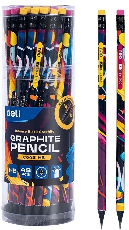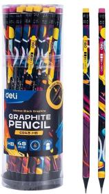 Карандаш ч / г Deli EC044-HB 2.2мм HB кругл. липа ассорти Graffiti texture ластик
