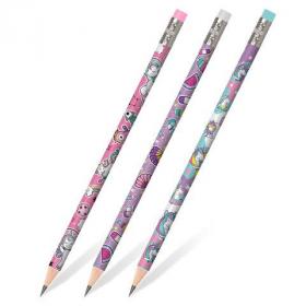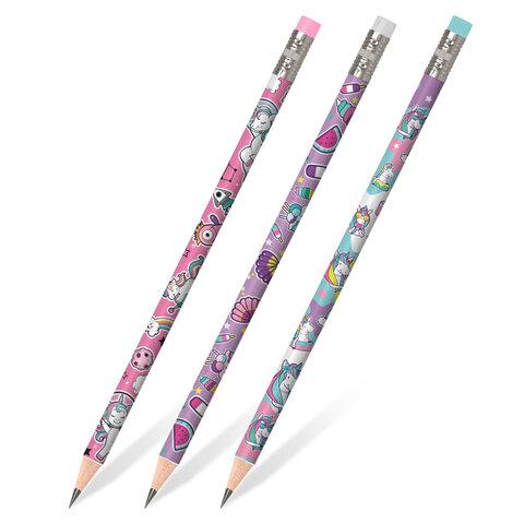 Карандаш чернографитный ЮНЛАНДИЯ "ЕДИНОРОГИ", 1 шт., HB, с ластиком, корпус ассорти, 181780