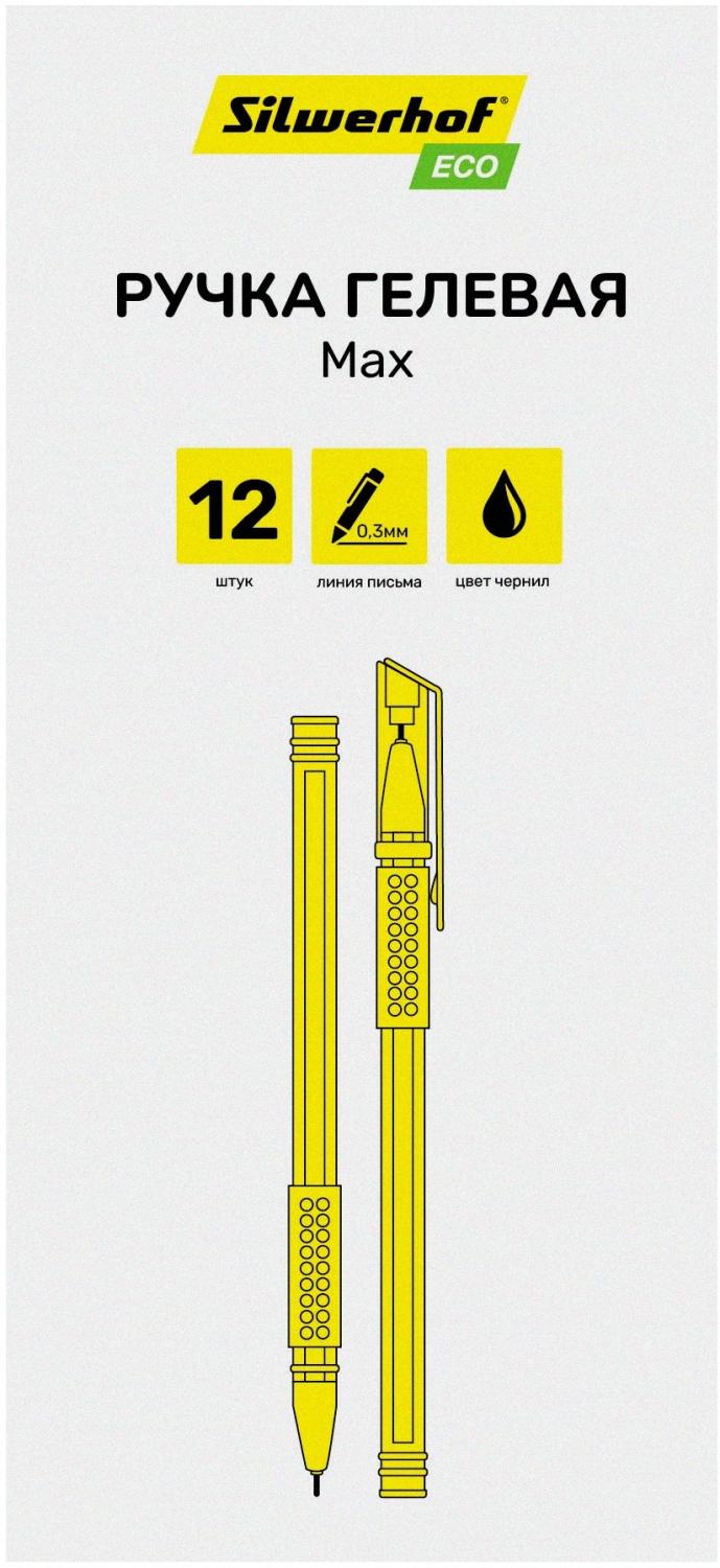 Ручка гелев. Silwerhof Eco Max d=0.5мм черн. черн. кор.карт. сменный стержень линия 0.3мм резин. манжета