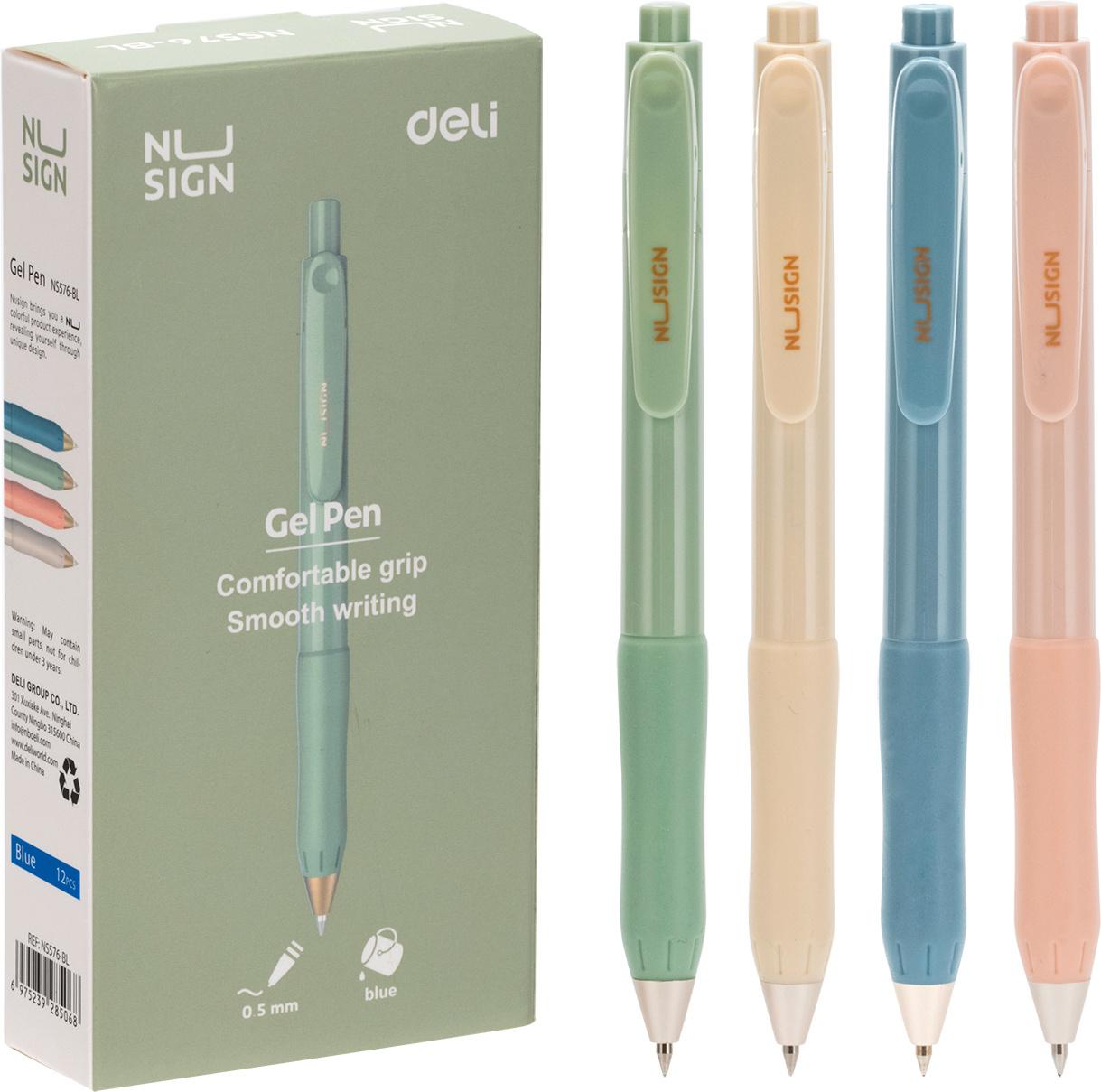 Ручка гелев. автоматическая Deli Nusign ENS576-BL ассорти син. черн. линия 0.5мм резин. манжета