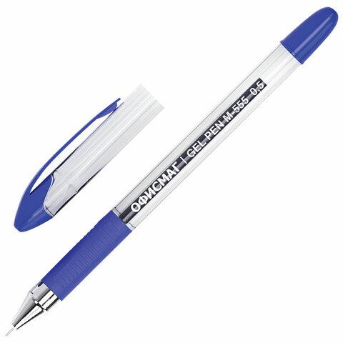 Ручка гелевая с грипом ОФИСМАГ "M-555", СИНЯЯ, игольчатый наконечник 0,5 мм, линия письма 0,35 мм, 144214