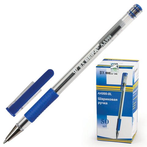 Ручка шариковая с грипом BEIFA (Бэйфа), СИНЯЯ, корпус прозрачный, узел 0,7 мм, линия письма 0,5 мм, AA999-BL