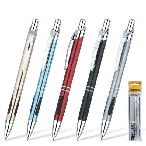 Ручка подарочная шариковая BRAUBERG "Minister", корпус ассорти, резиновые вставки, узел 1 мм, линия письма 0,7 мм, синяя, 141437