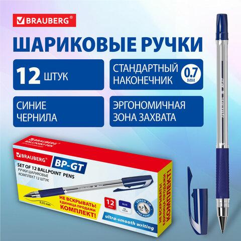 Ручка шариковая BRAUBERG "BP-GT", КОМПЛЕКТ 12 ШТУК, СИНЯЯ, евронаконечник 0,7 мм, линия письма 0,35 мм, 144005