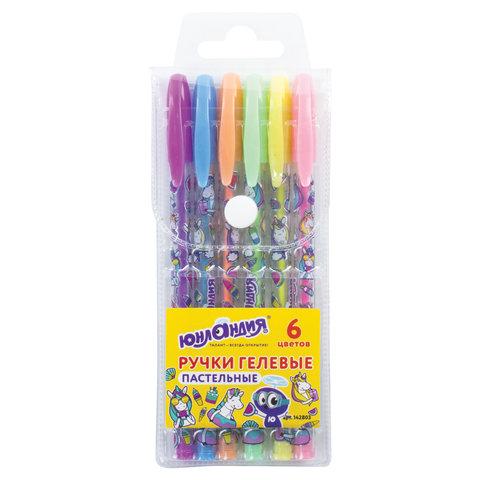 Ручки гелевые ЮНЛАНДИЯ, НАБОР 6 ЦВЕТОВ, ПАСТЕЛЬ, корпус с печатью, узел 0,7 мм, линия письма 0,5 мм, 142803