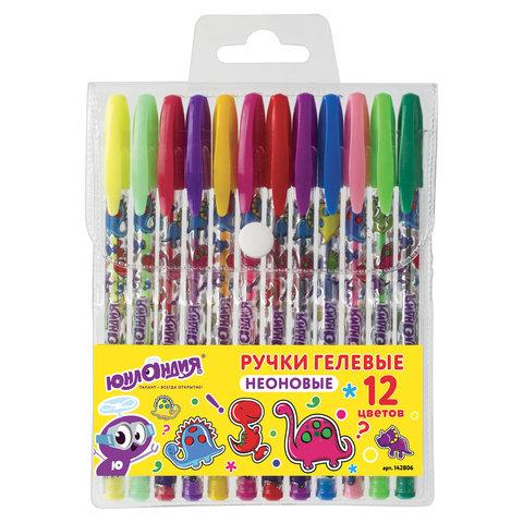 Ручки гелевые ЮНЛАНДИЯ, НАБОР 12 ЦВЕТОВ, НЕОН, корпус с печатью, узел 0,7 мм, линия письма 0,5 мм, 142806