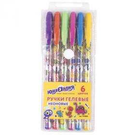 Ручки гелевые ЮНЛАНДИЯ, НАБОР 6 ЦВЕТОВ, НЕОН, корпус с печатью, узел 0,7 мм, линия письма 0,5 мм, 142804