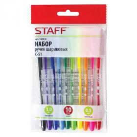 Ручки шариковые STAFF "C-51", НАБОР 10 шт., АССОРТИ, узел 1 мм, линия письма 0,5 мм, 142818