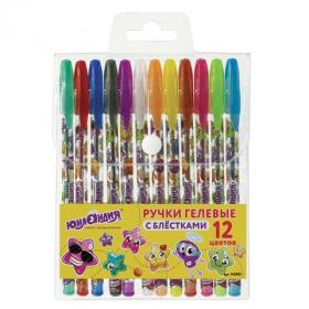 Ручки гелевые ЮНЛАНДИЯ, НАБОР 12 ЦВЕТОВ, БЛЕСТКИ, корпус с печатью, узел 0,7 мм, линия письма 0,5 мм, 142805
