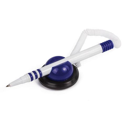 Ручка шариковая настольная BRAUBERG "Стенд-Пен", СИНЯЯ, пружинка, корпус белый / синий, линия письма 0,5 мм, 141353