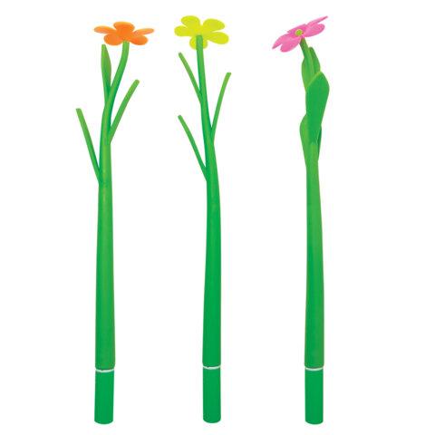 Ручка фигурная шариковая ЮНЛАНДИЯ "Цветочек", мягкий силиконовый корпус, ассорти, СИНЯЯ, пишущий узел 0,7 мм, 143779