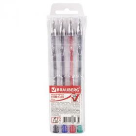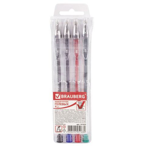 Ручки гелевые BRAUBERG "Jet", НАБОР 4 ЦВЕТА, узел 0,5 мм, линия письма 0,35 мм, 141023
