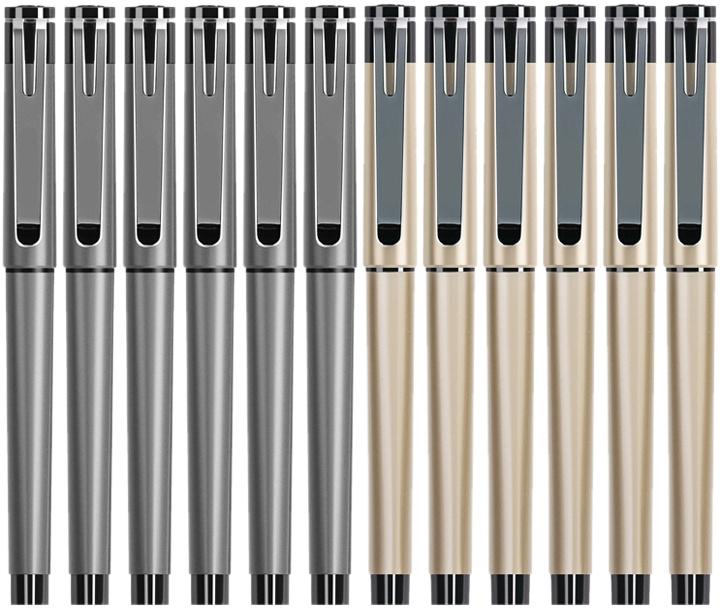Набор ручек шариков. Deli Arrow (EQ10-BK-P) синий мет. / черный черн. черн. кор.карт. (12шт) сменный стержень линия 0.7мм резин. манжета