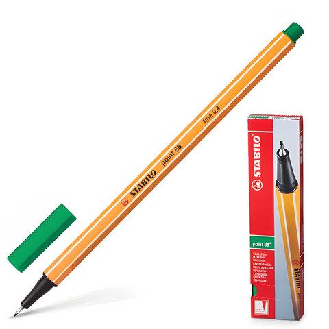 Ручка капиллярная (линер) STABILO "Point", ЗЕЛЕНАЯ, корпус оранжевый, линия письма 0,4 мм, 88 / 36