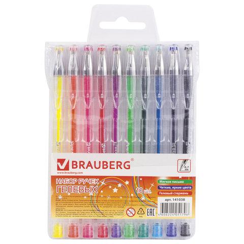 Ручки гелевые BRAUBERG "Jet", НАБОР 10 ЦВЕТОВ, узел 0,7 мм, линия письма 0,5 мм, 141038