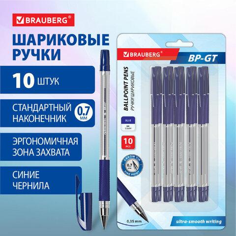Ручки шариковые с грипом BRAUBERG "ULTRA GT ORANGE", НАБОР 10 ШТУК, СИНИЕ, 0,35 мм, блистер, 144057
