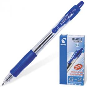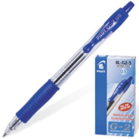 Ручка гелевая автоматическая с грипом PILOT G-2, СИНЯЯ, корпус прозрачный, узел 0,5 мм, линия письма 0,3 мм, BL-G2-5