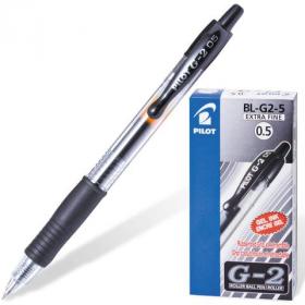 Ручка гелевая автоматическая с грипом PILOT G-2, ЧЕРНАЯ, корпус прозрачный, узел 0,5 мм, линия письма 0,3 мм, BL-G2-5