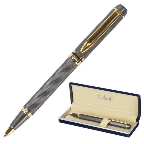 Ручка подарочная шариковая GALANT "Dark Chrome", корпус матовый хром, золотистые детали, пишущий узел 0,7 мм, синяя, 140397